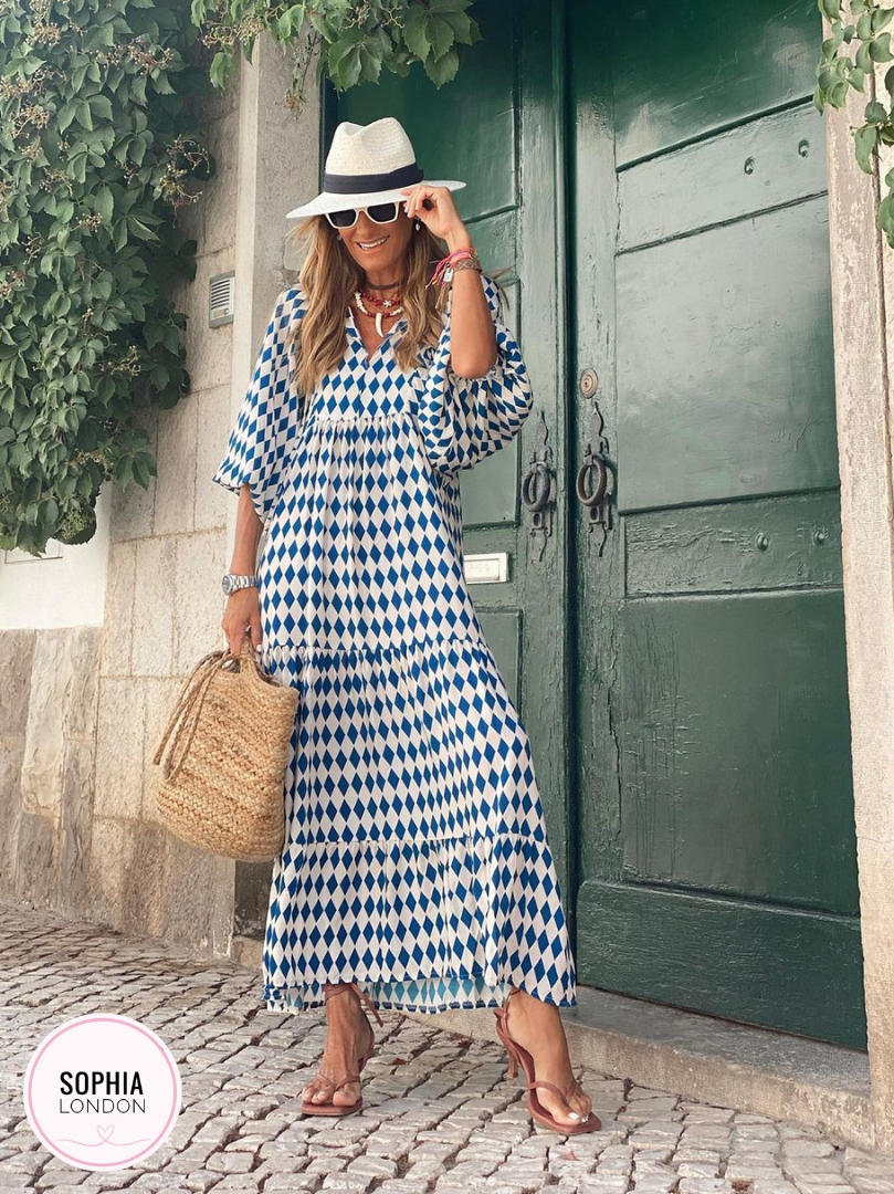 Stay chic and fresh in our maxi summer dress. With a V-neckline and half sleeves, it's comfortable even on the hottest days without sacrificing style. Available in 4 different colours.